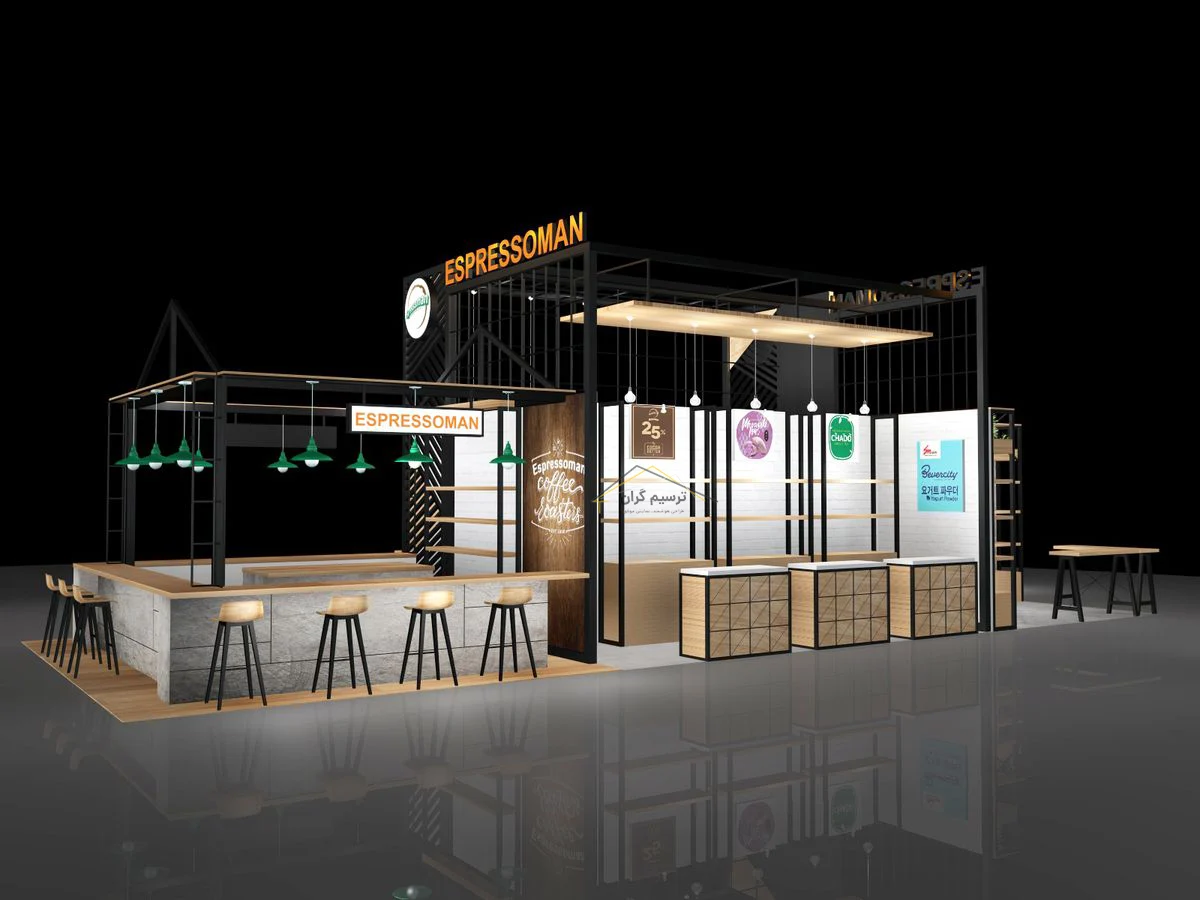 - غرفه با چیدمان کافهای برای برندهای نوشیدنی